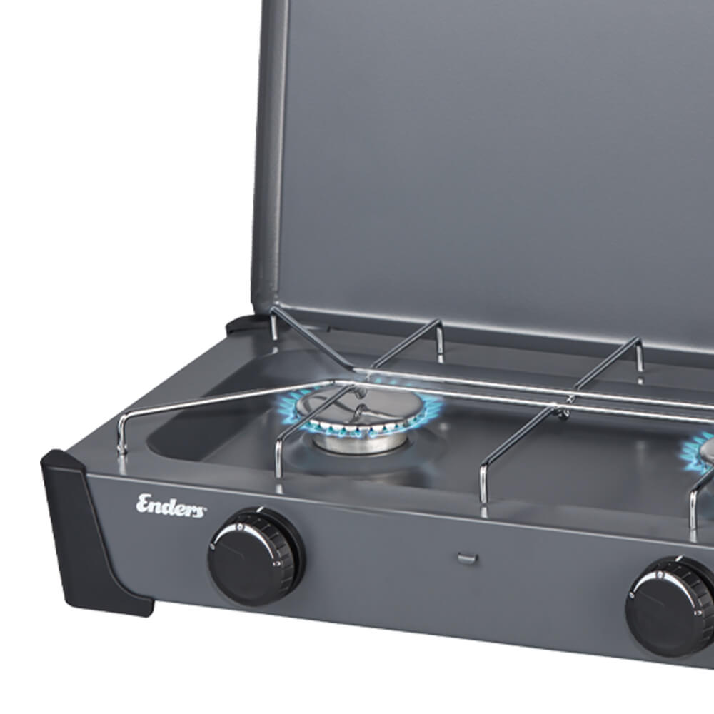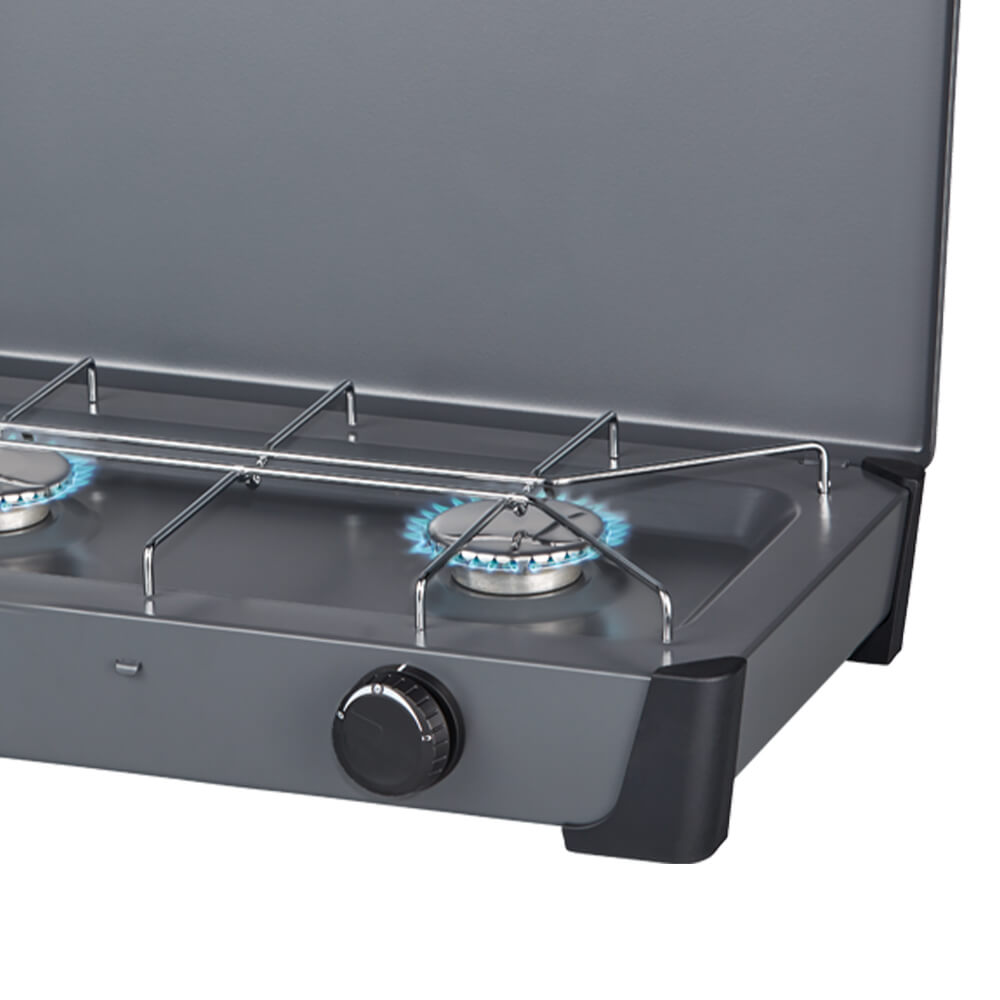Avec ses deux brûleurs réglables, la cuisson s’adapte naturellement au moment : faire chauffer de l’eau pour le café, lancer un plat simple ou préparer un repas plus complet.